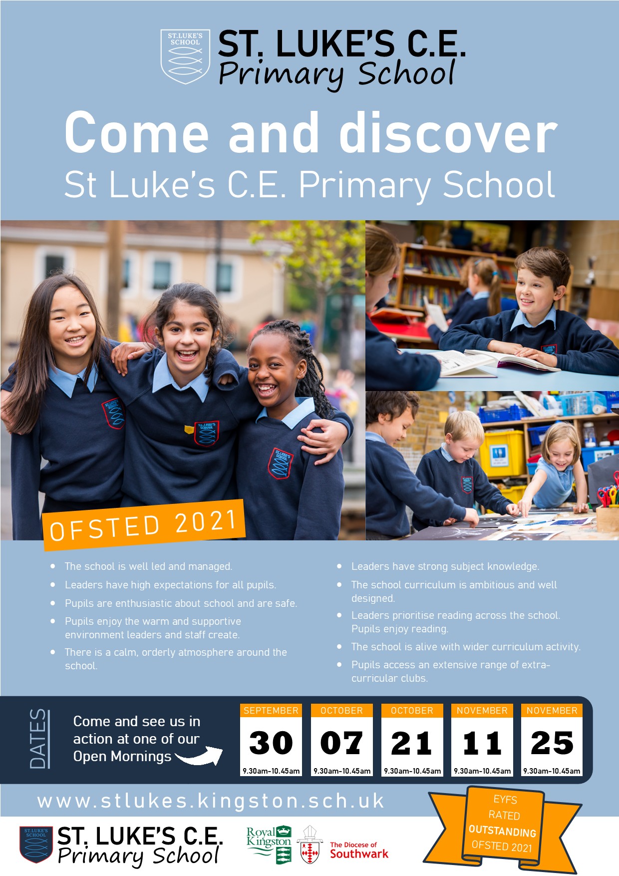 We are delighted that you are considering St Luke's as a prospective school for your child. Deciding on the right school for your child is very important and we believe that a visit is essential. One of the best ways to get to know St Luke's is to visit during an Open Morning or a School Tour.