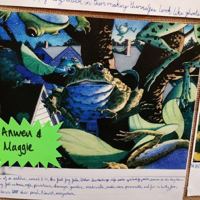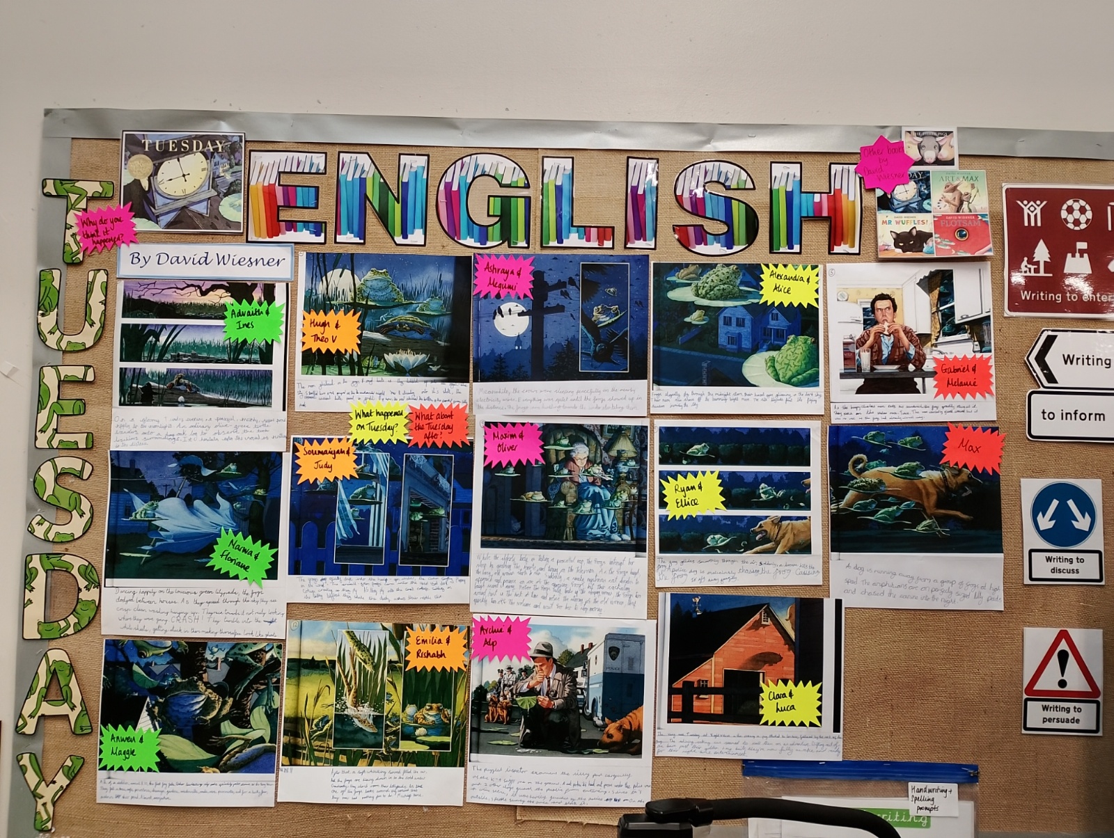 We have started the term with an invasion of flying frogs as our book for the first part of this half term is Tuesday written by David Weisner. It is a picture book where strange things happen on a Tuesday each week! We started the book by writing the text for each picture and then putting it altogether as our version of the book. As the book has a humour element, we will be working on using punctuation to add humour into our writing over the next few lessons.