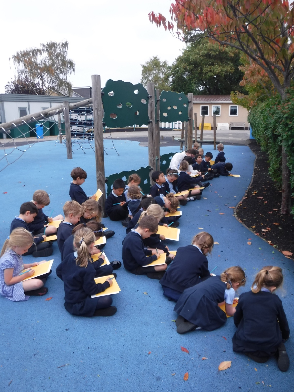 As seasonal change is a key component of the Year 1 science curriculum, lessons are planned throughout the year based on the children’s own observations and experiences. Last week, the children went outside to draw a tree in the school playground which has autumnal foliage. Showing focus and attention to detail, the children drew delicate pencil images of the shape of the tree and the tones of colour on the changing leaves.