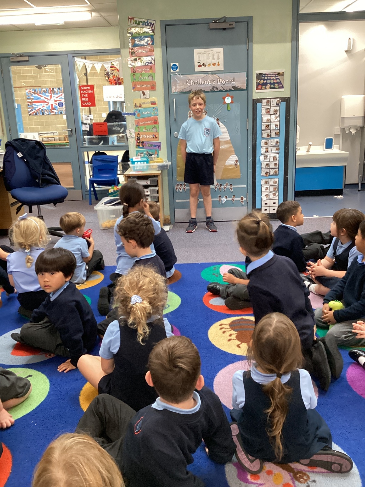 Last week we had Fergus from Year 4 visit us to show his wonderful poem for poetry day. He sung the poem by heart and it was such a pleasure for the children to see him perform with such enthusiasm. Such an inspiration for us little ones.
