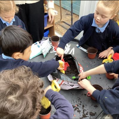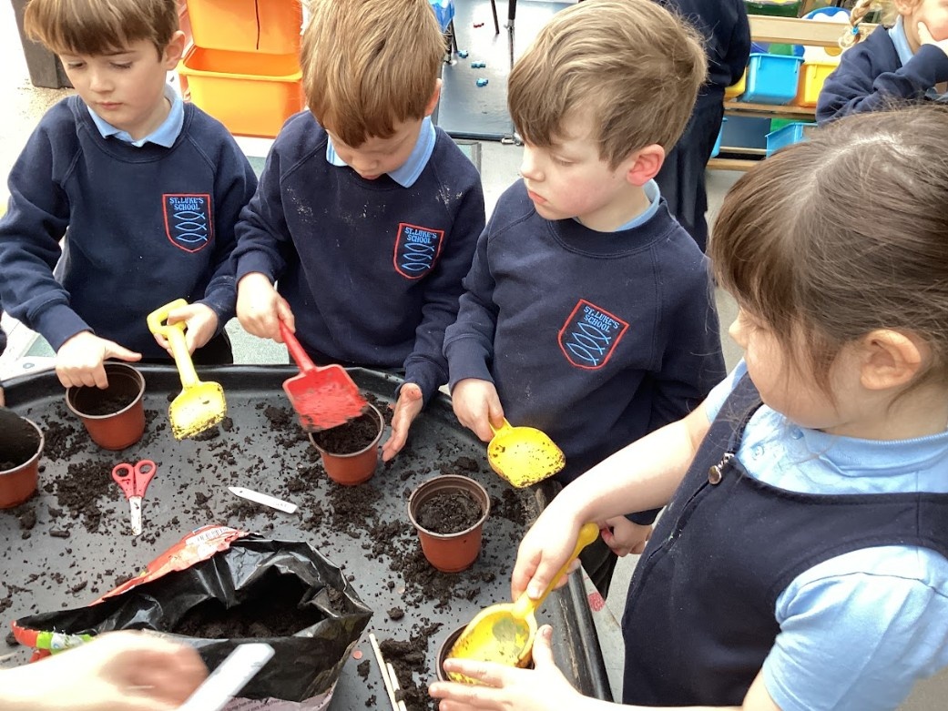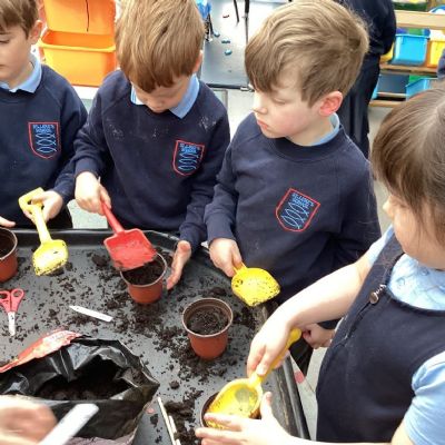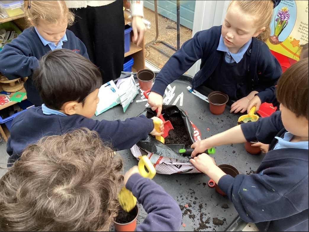 We also became gardeners this week by planting our own beans, just like in the story of Jack and the Beanstalk. The children carefully planted their seeds and are excited to watch them grow into tall beanstalks. We talked about what plants need to grow and will be observing them closely over the next few weeks.