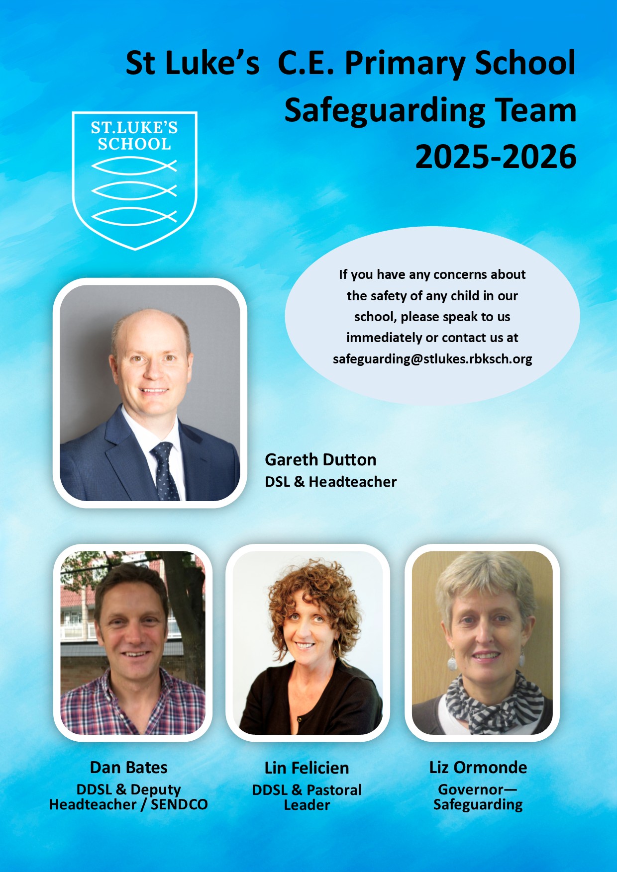 If you have any safeguarding concerns in this time away from school, please do not hesitate to contact the school using safeguarding@stlukes.rbksch.org or telephone (0208 546 0902).