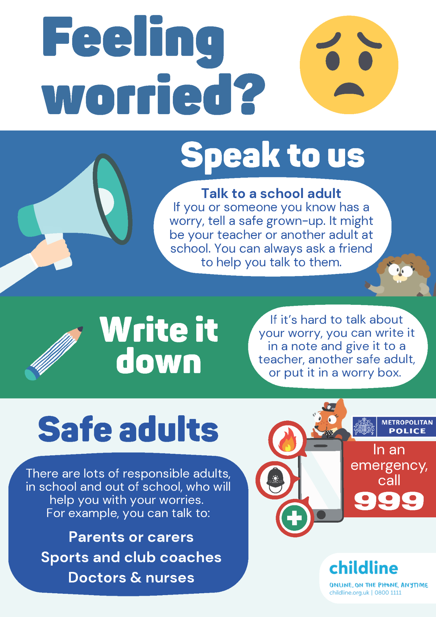 The child-friendly policy is designed for children. The policy shows children where to get help and support. There may be times when they want to talk to someone in school about a problem that might be upsetting.